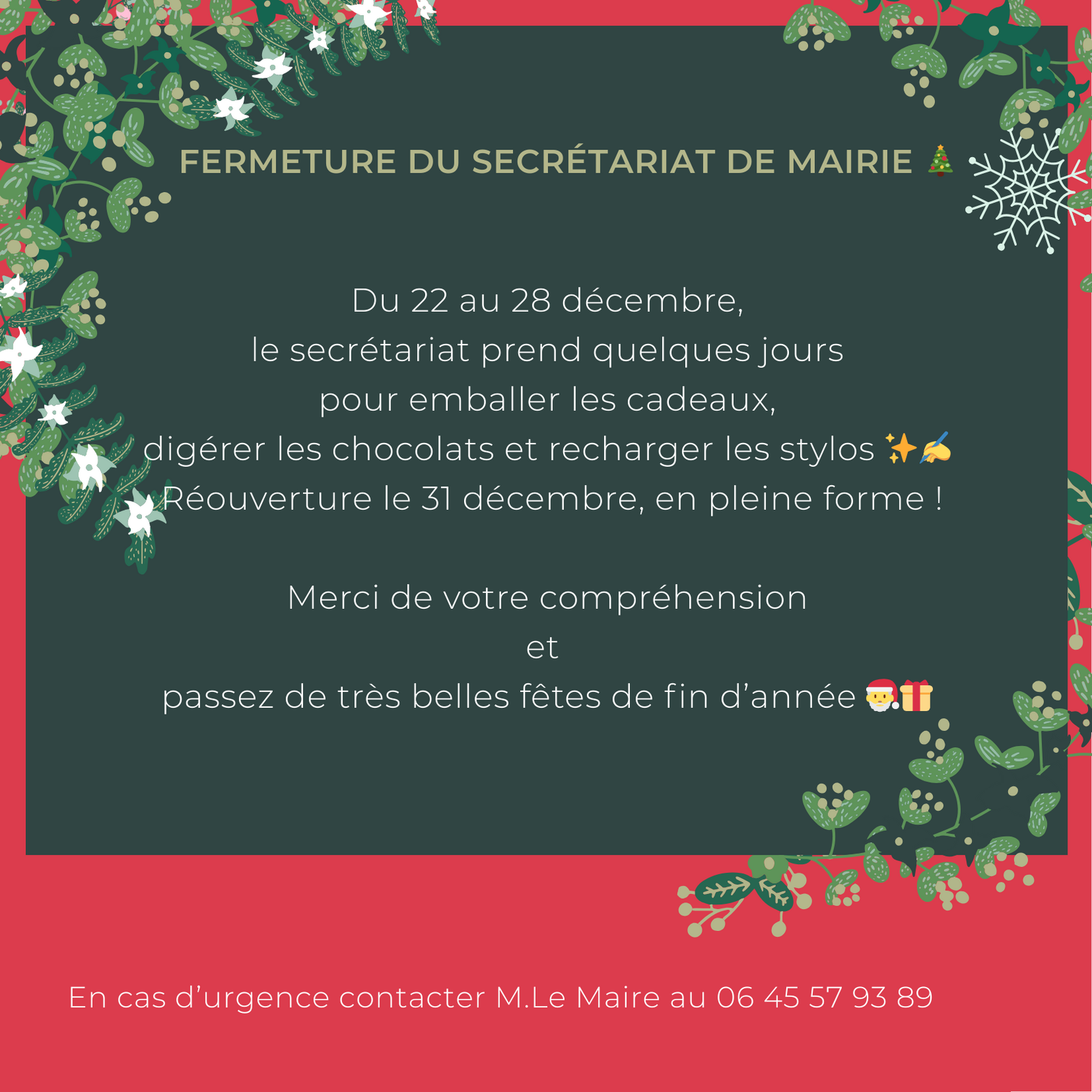 fermeture du secrétariat de Mairie