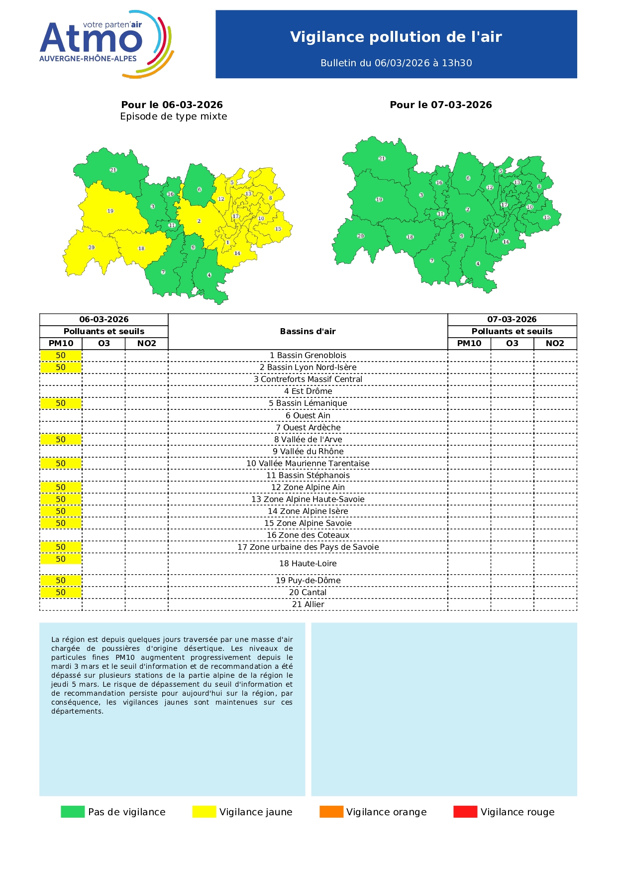 La procédure d’information-recommandation concernant la pollution atmosphérique a été maintenue ce jour, vendredi 6 avril 2026, pour les 24H00 à venir